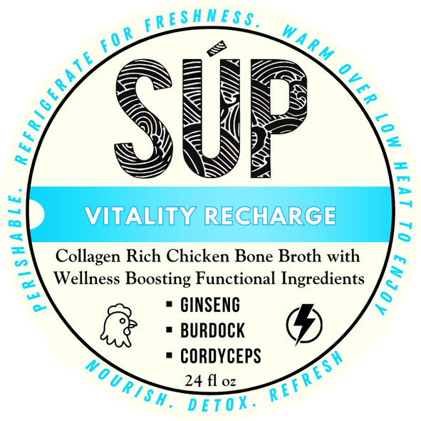 Súp Ginseng Burdock Vitality Recharge is a revitalizing chicken bone broth infused with the potent blend of ginseng root and burdock root. Crafted to invigorate and support your well-being, this nourishing elixir harnesses the power of nature's finest ingredients.